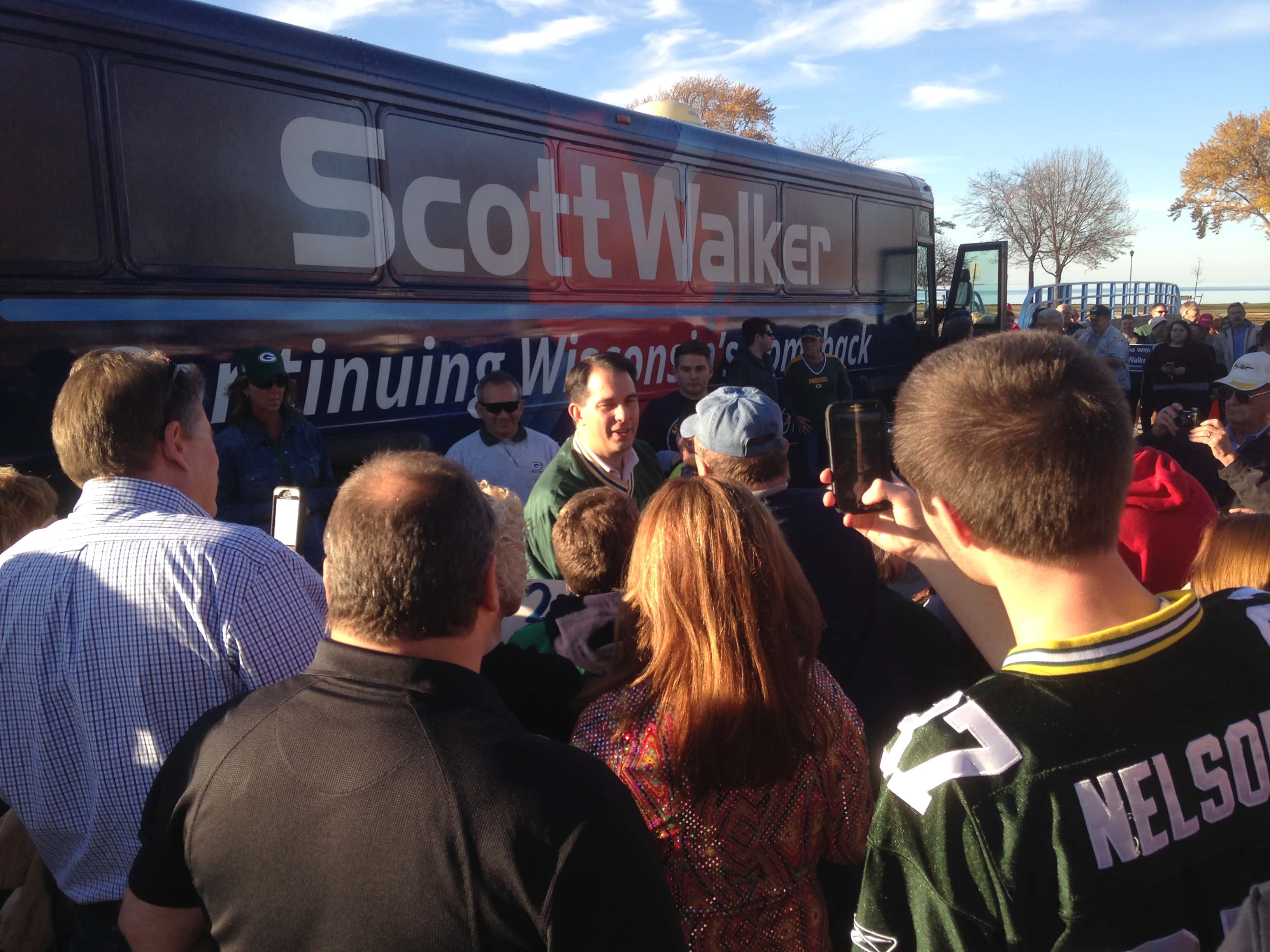 Governor Scott Walker says its “Washington special interests versus Wisconsin taxpayers.”  Walker made the comments during a Halloween campaign stop at Fond du lac Lakeside Park’s Oven Island Sunday afternoon.  Walker said he thinks president Obama’s campaign stop in Wisconsin Tuesday on behalf of Democrat Mary Burke is a political mistake by Burke.  Walker says he won’t be slowing down over the next week.  He says he plans to criss cross the state making more stops in the Fox Valley between now and election day.