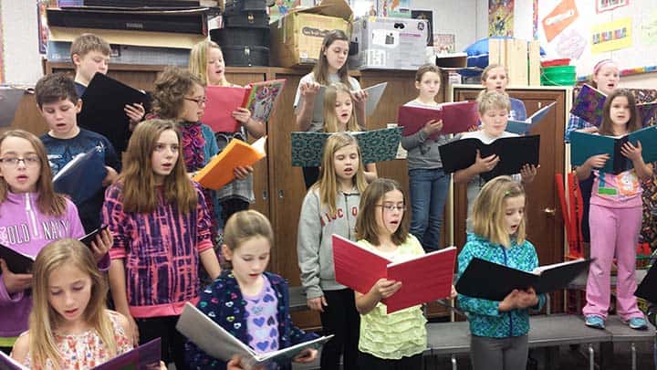 Rehearsals are under way for the Fond du Lac School District Choral Festival that will be held on Saturday, March 28. Over 1,000 choral students from the elementary, middle and high schools will perform at this bi-annual event being held at the Fond du Lac High School Acuity Fieldhouse at 4:00 p.m. (Doors open at 3:15 p.m.) The culminating activity will be the performance of all the students in a mass choir. Join us for this celebration showcasing the vocal abilities of our students performing music from around the world during Music in Our Schools month. Advanced tickets can be purchased through any district choir teacher. Tickets will be $3 in advance and $5 at the door. All students and children are free. Lakeshore Elementary students shown rehearsing are (L-R): 1st row – Jayden Behnke, Becca Roth, Alyssa Kraus, and Gabby Born; 2nd row – Lydia Olig, Tori Sabel, and Kloey Krug; 3rd row – Brody Schneider, Amelia Last, Liliana Birschbach, Kaeden Leffin, and Camille Emmerich; 4th row – Aidan Bahr, Nikki Elm, Trista Muench, Jada Davis, Haley Kissel, and Rachel Abel.