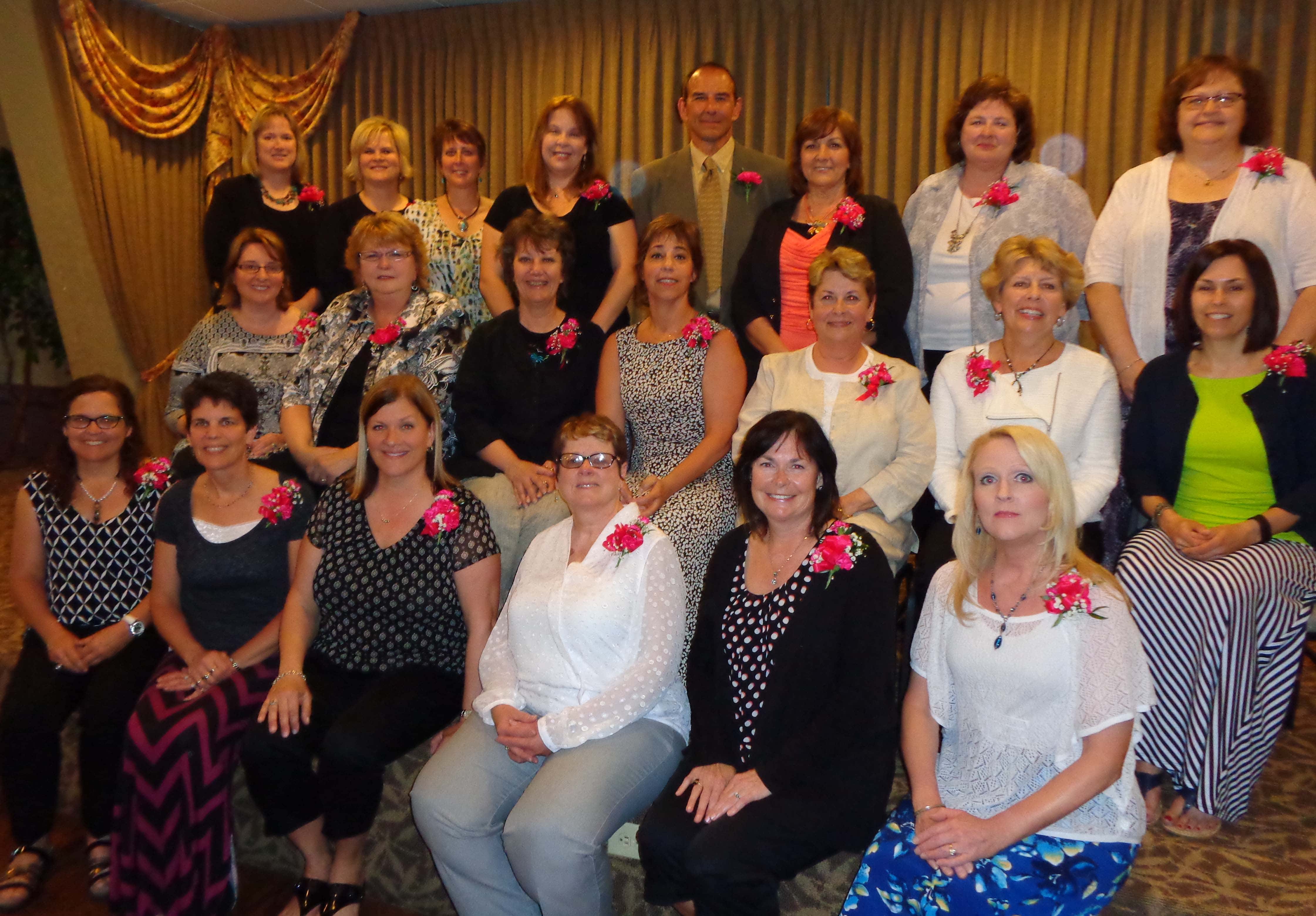 Thirty-one teachers in the Fond du Lac School District were recently recognized for their 25 years of service to their students, our schools, and the community. This celebration of dedication took place at the District’s 25 Year Awards Banquet on May 4 at the Knights of Columbus. Highlights of the evening included favorite memories shared through brief stories read by Superintendent Dr. James Sebert. Shown here are: (first row L-R) Susan Tourdot, Karen Moehn, Billie Tighe, Patricia Kranig, Dawn Dahlke, and Kristie Hochrein; (second row) Becky May, Julie Riese, Pamela Hoaglin, Joanne Marchionda, Margaret Lipschultz, Peggy Vogds, and Gina Rieder; (third row) Denise Paar, Susan Teletzke, Mary Kris Zangl, Julie Gedemer, Curtis Lock, Mary Baumhardt, Lorraine Clements, and Diane Weider. Not pictured: Edward Brady, Stephanie Davis, Theodore Eischeid, Heather Meier, Tammy Mitchell, Renee Nolan, Jeffery Schmuhl, Kim Schneider, Christie Wehner, and Richard Wojahn.