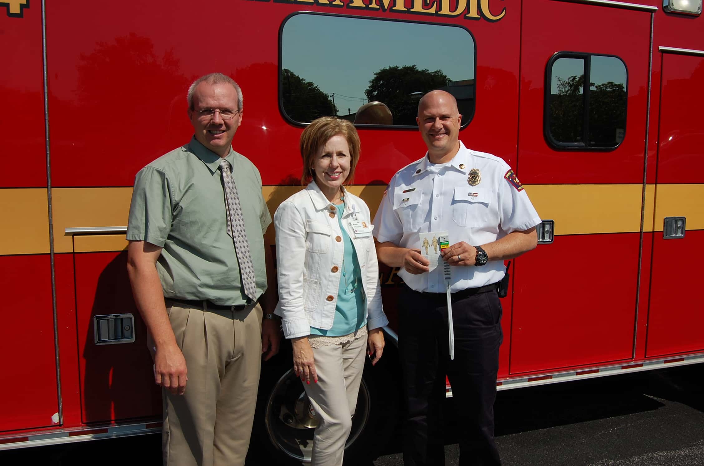 The Agnesian HealthCare Foundation has donated funds to provide mass casualty waterproof medical tags for 19 different first responder and EMS services in Fond du Lac County. Michelle Ries (center), Agnesian HealthCare Foundation events coordinator, is shown with Nathan Larsen (left), MD, St. Agnes Hospital Emergency Department and Fond du Lac EMS medical director, and Todd Janquart, Fond du Lac Area EMS Association (FAEA) vice president.