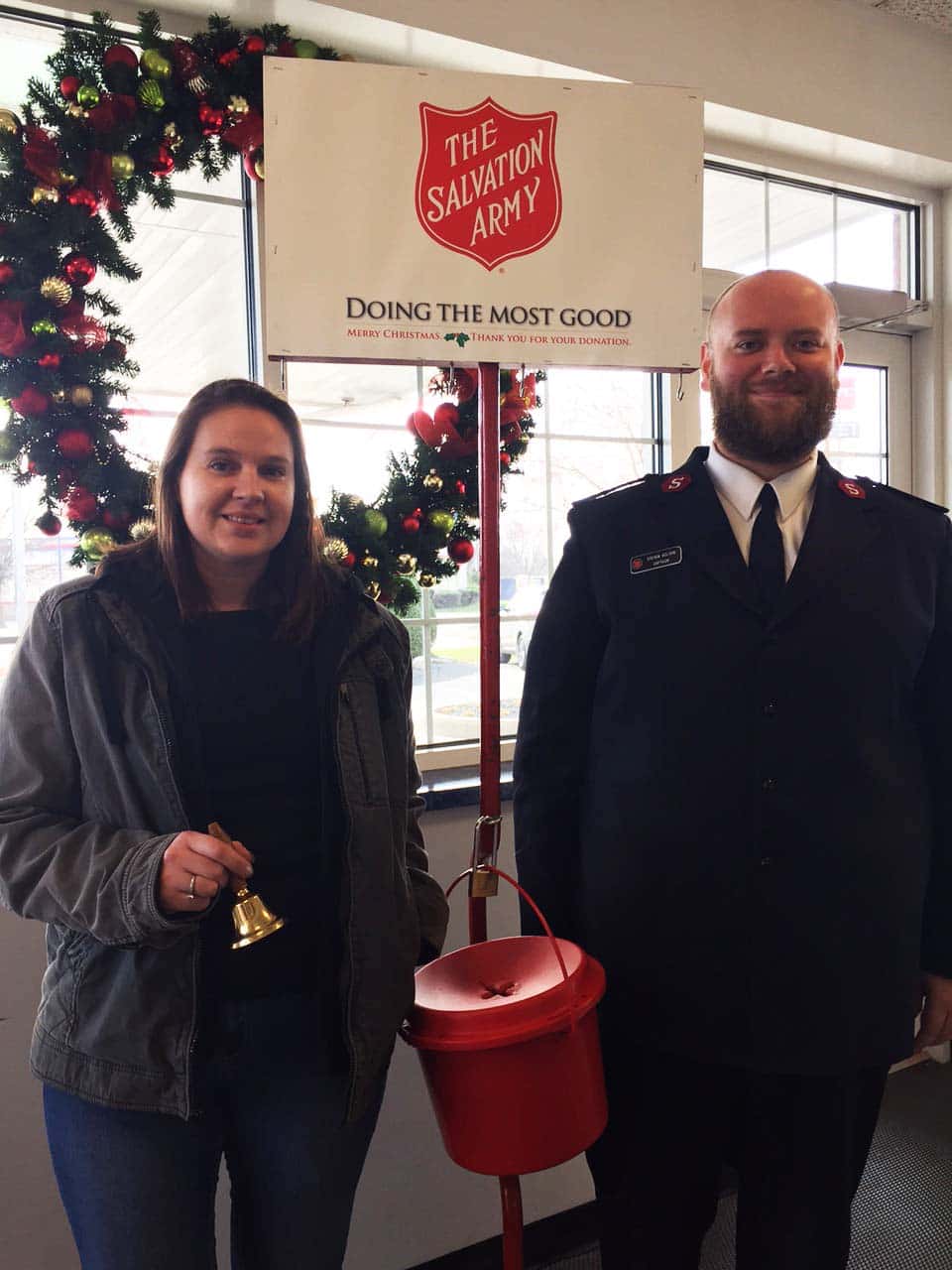 The Salvation Army Kettles, each a cheerful Christmas red, will stand tall throughout Fond du Lac until December 24.   Seventeen kettles with volunteer bell-ringers and 87 counter top “minis” welcome passersby, at several Fond du Lac locations.  This year’s Red Kettle Christmas Appeal seeks $150,000 through kettle contributions. Thirty five percent of The Salvation Army’s annual operating budget comes from the Red Kettle Christmas drive.  Funds raised are tax-deductible  and support Christmas Assistance for 600 families, a Thrift Store,   a 13,700 summer  free lunch program,  Fond du Lac’s largest food pantry, and year round essential services for families in need.  This year’s campaign is spearheaded by U.S Bank and The Stone Foundation.