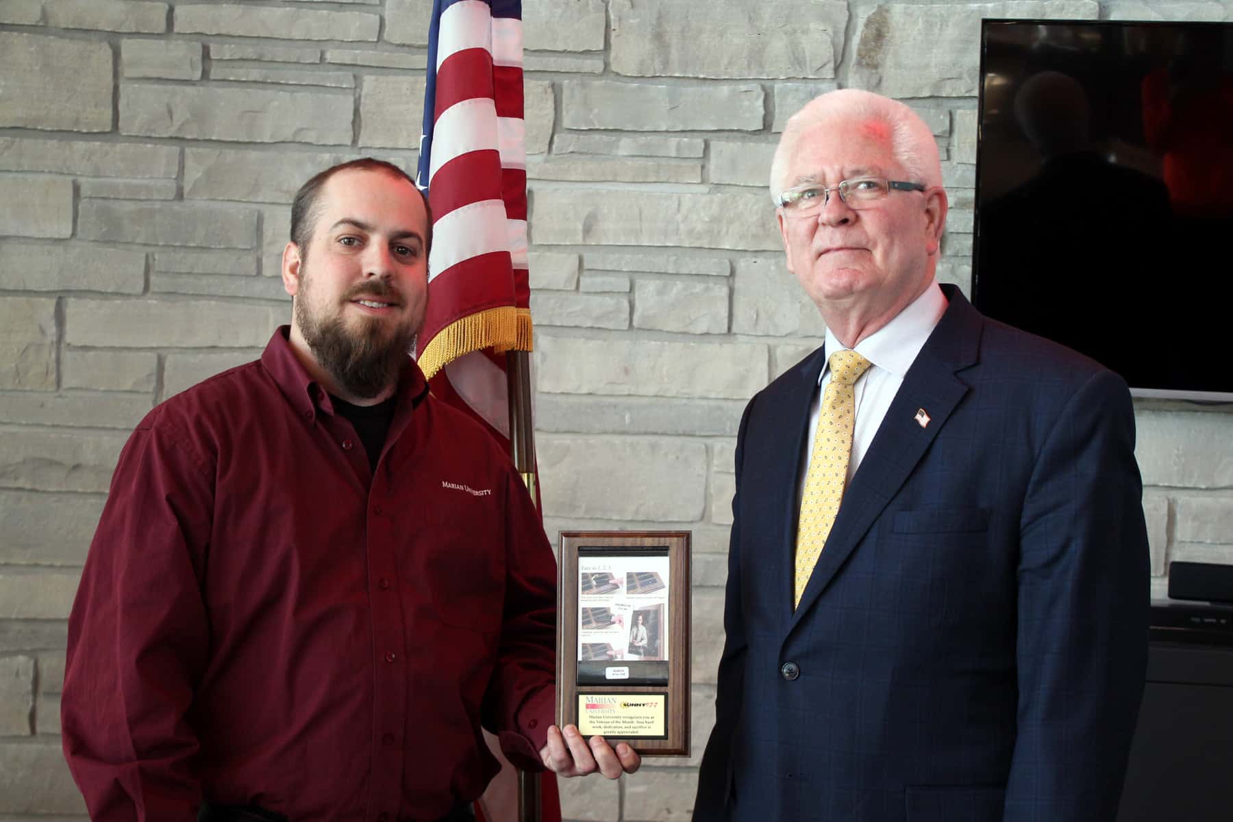 Wayne Buteyn was selected as Marian University’s Veteran of the Month. Buteyn, who was raised in Waupun, served in the army for two years in the United States and one year in Vietnam where he was a weatherman. “I am honored and humbled by this award. Everything that happened during the Vietnam War was difficult, but it was definitely worth it,” said Buteyn. “In the military, there is so much out there for individuals, especially when considering one’s personal and professional goals.” Buteyn has served a funeral director for more than 40 years at Werner Harmsen, located in Waupun, Wis. The Veteran of the Month contest, presented by Marian University and Sunny 97.7/96.1 WTCX, highlights one area veteran each month. Each veteran chosen receives a plaque, an appreciation package from Marian University and Sunny 97.7’s sponsors, including a 3 credit undergraduate class which can be redeemed in the traditional undergraduate program or any of adult undergraduate sessions. In addition, recipients are honored with a monthly ceremony at Marian University, and have the opportunity to share their story on the radio. Deserving veterans may be nominated by visiting http://www.radioplusinfo.com/2014/10/17/veteranofthemonth/. Marian University will select one veteran at the end of each month.