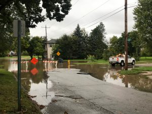 Several Fond du Lac city streets flooded and Fruth Field is under water following  last night’s heavy rain.   Fond du Lac Public Works director Jordan Skiff says the city bypassed the sanitary sewer system into Lake Winnebago in an effort to prevent basement back-ups.