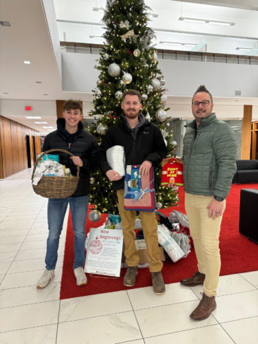Pictured in front of the tree with the items from left to right:  employees Wyatt Federman, Austin Wollerman and Tim Guelig.   National Exchange Bank & Trust is an independent bank with convenient locations throughout Southeast Wisconsin. For more information, visit the bank’s website at nebat.com.