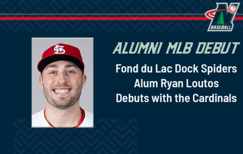 FOND DU LAC, WI – Former Fond du Lac Dock Spider Ryan Loutos made his Major League debut for the St. Louis Cardinals on Saturday, June 1, 2024. Loutos is the 354th former Northwoods League player to reach the Major League level and the third former Dock Spider, joining Nick Fortes of the Miami Marlins and Victor Scott of the Cardinals. Loutos, who played collegiately at Washington University in St. Louis, played for the Dock Spiders in 2020 and 2021. While pitching for the Dock Spiders in 2021, Loutos signed as a free agent with the Cardinals. In 2020 with the Dock Spiders, Loutos appeared in eight games and went 3-0 with a 6.75 ERA. He struck out 19 batters over 20.0 innings. In 2021, he pitched in three games and was 1-0 with a 2.12 ERA. He had nine strikeouts in 17.0 innings with a 1.294 WHIP. Loutos started his professional career in 2021 with the Palm Beach Cardinals of the Low-A Southeast League. Over 12 games, he went 1-2 with a 5.56 ERA in 22.2 innings pitched. He struck out 26 while walking 11. Loutos began the 2022 season with High-A Peoria of the Midwest League. After nine games in Peoria, he was sent to Double-A Springfield in the Texas League. He would pitch in 15 games in Springfield before another promotion, to finish out the year, to Triple-A Memphis in the International League. For the season, he pitched in 46 games and was 3-6 with a 3.96 ERA. He struck out 72 batters in 63.2 innings and had nine saves. In 2023, Loutos started the year in Springfield and then, after two appearances, went back up to Memphis. Between the two clubs, he appeared in 50 games and was 2-5 with a 6.53 ERA in 73.0 innings pitched. He struck out 84 batters, walked 41 and had one save. Prior to his callup to St. Louis, Loutos had appeared in 13 games for Memphis and went 1-0 with a 1.72 ERA and 18 strikeouts over 15.2 innings while notching four saves. In his Major League debut against the Philadelphia Phillies, Loutos entered the game in relief in the eighth inning and pitched 1.0 scoreless innings while allowing only one hit.