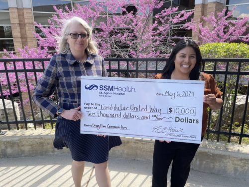 SSM Health is giving $10,000 to Drug Free Communities of Fond du Lac, a collaboration of individuals from more than 25 community organizations, who come together to address the growing issue of substance abuse in our communities. Goals are to prevent and reduce underage drinking, binge drinking, and misuse and abuse of narcotics. “Our program’s overarching goal is to significantly reduce the prevalence of substance abuse, particularly concerning narcotics and alcohol, among adolescents,” according to Jeanette Morales, Fond du Lac County United Way Drug Free Communities community impact coordinator. “Through focused interventions and community-wide involvement, we aim to create a supportive environment that discourages substance use and promotes healthier lifestyle choices.” The donation recognizes that SSM Health understands the pain and devastation of addiction, as well as the emotional and mental illnesses that may be associated with it. “Our mission is to provide quality and compassionate care to adults struggling with alcohol and/or drug conditions and mental health issues,” according to Jo Pasiuk, MD, SSM Health Greater Fond du Lac Ambulatory Care/Medical Informatics medical director. “Preventing mental and/or substance use disorders or co-occurring disorders and related problems is critical to behavioral and physical health..” To learn more, call the Fond du Lac County United Way at 920-921-7010 or visit fdlunitedway.org. In 2023, SSM Health’s community benefit ministry totaled more than $630,000 across the communities it serves. This investment helps ensure access to health care for patients who are uninsured or underinsured, train the next generation of health professionals to care for those in need, and fund programs to address the most pressing health needs of our communities.