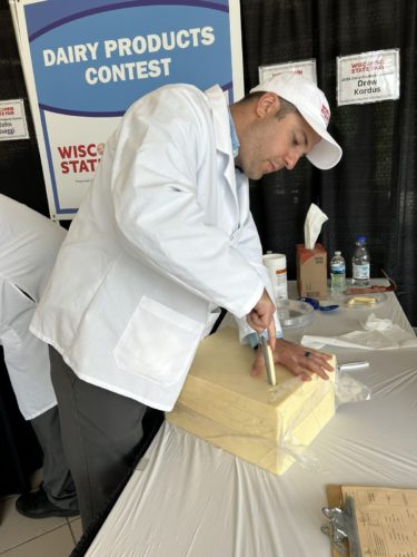 (West Allis, WI) Dairy manufacturers from throughout the state submitted over 460 entries for the 2024 Wisconsin State Fair Dairy Products Contest, which took place June 20 at the Wisconsin State Fair Park. The contest featured over 50 classes for cheese, sour cream, butter, yogurt, milk and custard. The 2024 Grand Master Cheesemaker, Grand Champion Butter, Grand Champion Yogurt, Grand Champion Sour Cream, Grand Champion Milk and Grand Champion Custard will be announced at the Blue Ribbon Dairy Products Auction on Thursday, August 8 at The Wisconsin State Fair Park. The Blue Ribbon Dairy Products Auction is a fundraiser for the Wisconsin State Fair Dairy Promotion Board. Auction proceeds fund scholarships for students pursuing dairy-related degrees and support the board’s interactive educational display – Dairy Lane – located in the Lower Dairy Barn at Wisconsin State Fair Park.