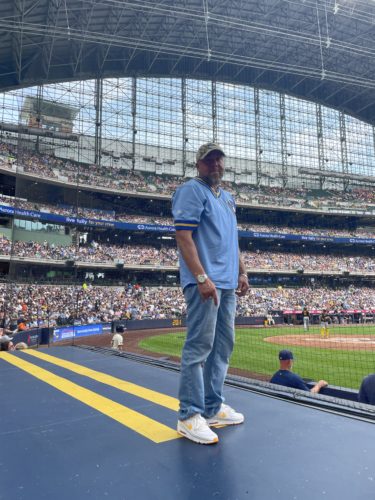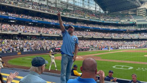 Dyson Nunn, RN, an SSM Health St. Agnes Hospital Emergency Department charge registered nurse, received the surprise of a lifetime thanks to family and friends as he was recognized by the Milwaukee Brewers as the “Hero of the Game” on July 11, 2024. Dyson was nominated by Lucas Lacrosse, a fellow lead Emergency Department charge registered nurse. As Hero of the Game, Dyson was recognized for his 18 years of military service. Dyson’s recognition shared: