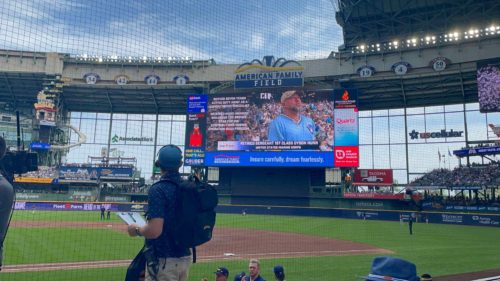 “Please join in recognizing Retired Sergeant 1st Class Dyson Nunn for 18 years of military service. Dyson served seven years active-duty Army as a combat medic specialist and continued his service with the Wisconsin National Guard retiring in 2013 as a sergeant first class. Sergeant Nunn has been on a total of two deployments in Kosovo and Iraq from 2006-2007. Sergeant Nunn has received many awards including the Bronze Star for his contributions during Operation Iraqi Freedom. Dyson continues to serve his community today as a registered nurse in the Emergency Department at SSM Health St. Agnes Hospital in Fond du Lac. This recognition is celebrated with his friends and family at today’s game. The Brewers thanks you for your service and hope you enjoy today’s ball game.”