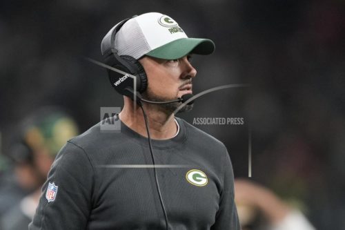 Green Bay Packers head coach Matt LaFleur watches during the first half of an NFL football game against the Philadelphia Eagles, Friday, Sept. 6, 2024, at the Neo Quimica Arena in Sao Paulo. (AP Photo/Doug Benc)