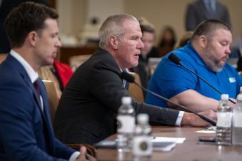 Former NFL quarterback Brett Favre appears before the House Committee on Ways and Means on Capitol Hill, Tuesday, Sept. 24, 2024, in Washington. (AP Photo/Mark Schiefelbein)