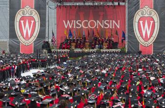 FILE – Graduating students listen to a commencement address at the University of Wisconsin in Madison, Wis., on May 12, 2018. (AP Photo/Jon Elswick, File)