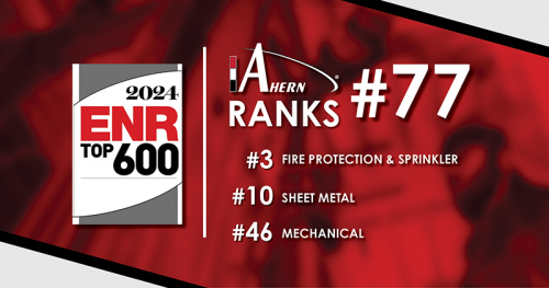 Fond du Lac, WI. – Engineering News-Record (ENR) has listed Ahern as a ‘Top 600 Specialty Contractor’ of 2024. Ahern was ranked 77th this year, moving up after ranking 86th in 2023. The annual ranking is determined by a company’s construction revenue from a subcontracting capacity. The list also captures the top contractors in various sub-categories. Ahern was ranked 3rd in the ‘Top 20 Firms in Fire Protection and Sprinklers.’ The firm also ranked 10th in ‘Top 20 Firms in Sheetmetal,’ and 46th in the ‘Top 50 Firms in Mechanical.’ “We are pleased to be recognized by ENR as one of the nation’s top specialty contractors,” says Ahern Chairman and CEO Tripp Ahern. “It’s impressive to see the company’s commitment to delivering exceptional mechanical and fire protection solutions, especially in challenging times. Adapting to labor shortages and supply chain issues while maintaining high standards speaks volumes about Ahern’s resilience and expertise. It’s exciting to think about the continued partnerships and innovative projects ahead.”