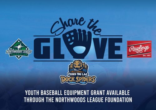 FOND DU LAC, WI – The Fond du Lac Dock Spiders are pleased to once again accept applications for the annual “Share the Glove” grant, courtesy of the Northwoods League Foundation. Entering its seventh year of the “Share the Glove” initiative, the Northwoods League Foundation has awarded annual grants of Rawlings baseball and softball equipment to youth organizations in communities in the league’s team markets. The Northwoods League Foundation is a 501(c)(3) charitable organization that serves as a vehicle to transform a shared passion for baseball into positive change and support for communities. The mission of the Northwoods League Foundation is to utilize the game of baseball to enrich the quality of life for children and families with an enduring and caring focus on Northwoods League communities. In support of this mission, the Foundation will be awarding 25 equipment grants to youth baseball and softball organizations throughout communities with a Northwoods League Affiliate. The Fond du Lac Dock Spiders will be awarding a Youth Baseball Equipment Grant in 2025.
